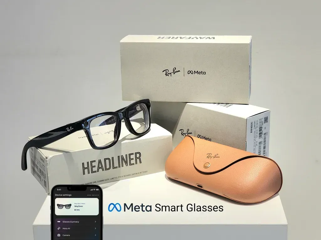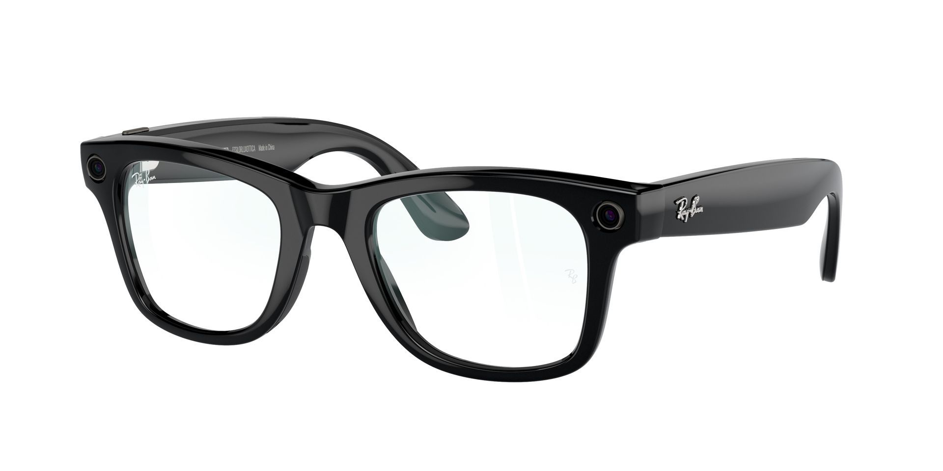 Occhiali smart con fotocamera, microfoni e altoparlanti integrati, ideali per scattare foto, ascoltare musica e interagire con l’AI senza usare le mani.