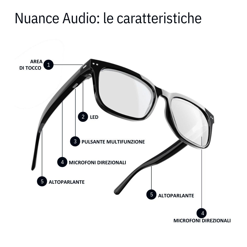 Occhiali smart che migliorano l’udito amplificando le voci e riducendo i rumori.